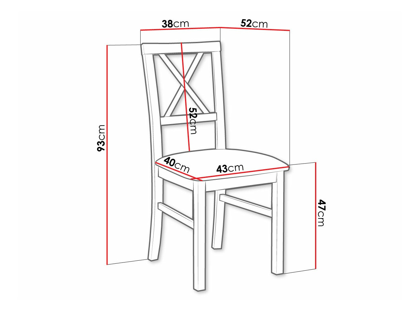 Largura do encosto: