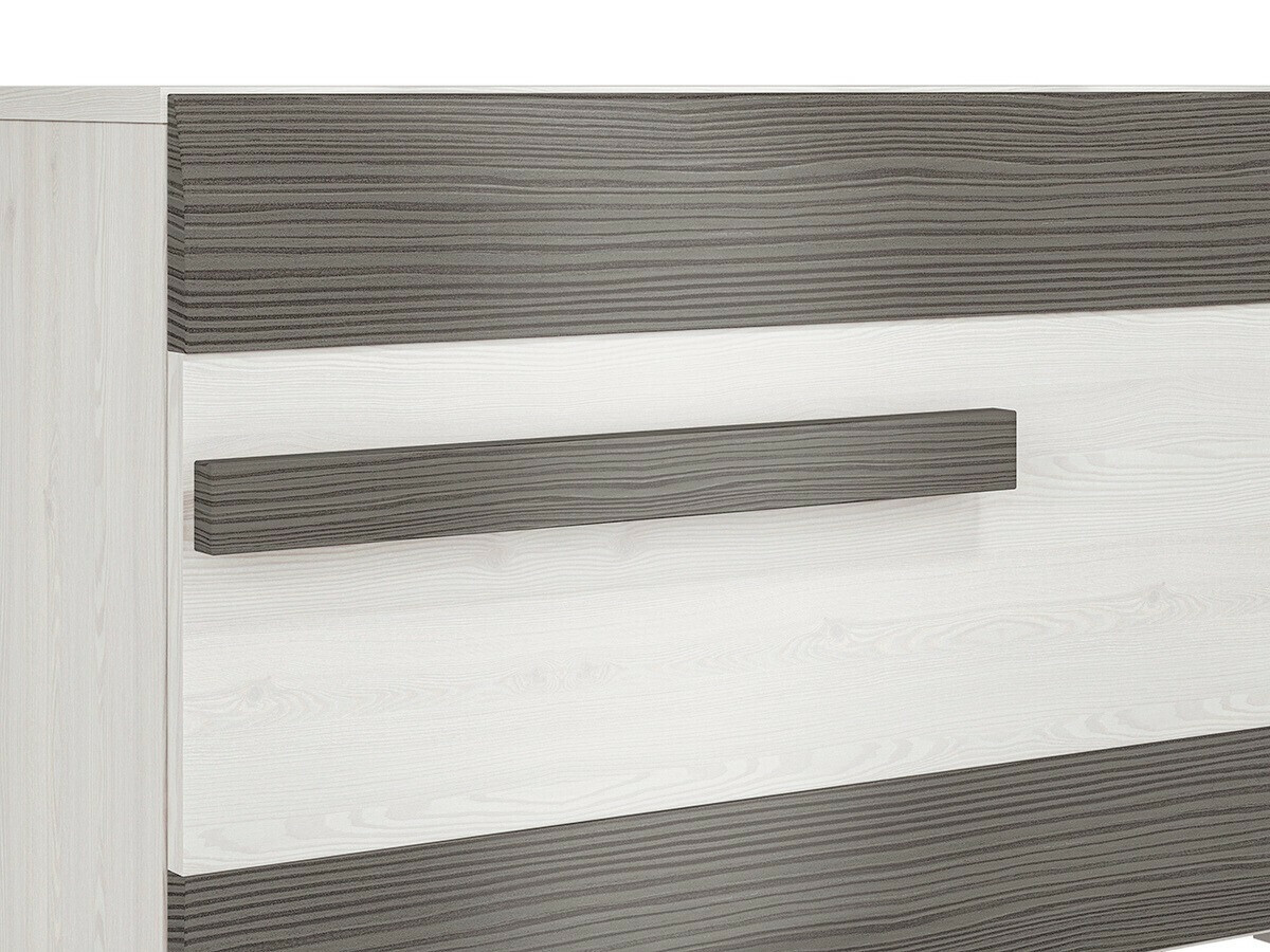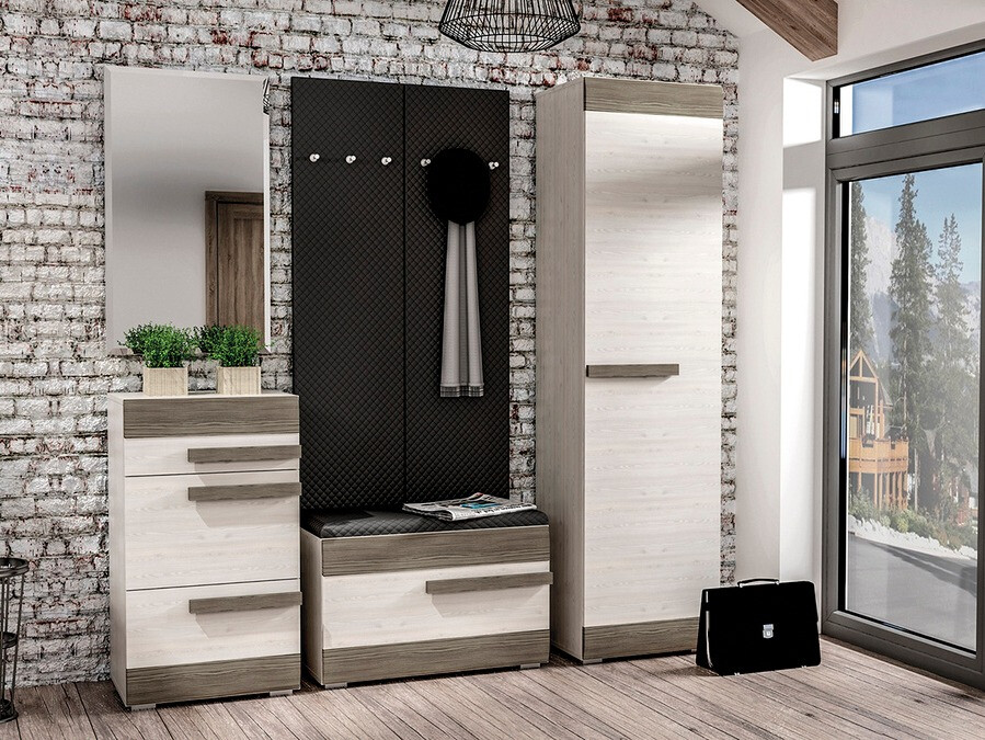 Se procura uma coleção de mobiliário versátil e adequada a vários espaços da casa, esta coleção é a escolha perfeita. As peças desta coleção são adequadas para salas de estar, quartos, entradas ou quartos de crianças. O foco desta coleção é o conforto e o design bonito adaptável a diversos gostos. A combinação das cores pinho branqueado e cinzento é versátil e fácil de combinar. As superfícies dos móveis são resistentes a pequenos riscos e os seus rebordos são protegidos com uma tira especial em ABS, garantindo menos preocupações com o desgaste rápido. Os móveis são fornecidos com pernas e puxadores de plástico, que se integram perfeitamente no design geral sem o sobrecarregar. As peças de exposição incluem vidro temperado, que é mais durável e seguro do que o vidro normal. Uma caraterística prática e universal do mobiliário é o facto de as portas poderem ser montadas tanto do lado direito como do lado esquerdo. Além disso, o mobiliário oferece espaços de arrumação fechados e abertos, ajudando na arrumação organizada dos artigos. Para aqueles que desejam dar mais exclusividade aos interiores da sua casa, podem encomendar adicionalmente iluminação LED economizadora de energia para estas peças.