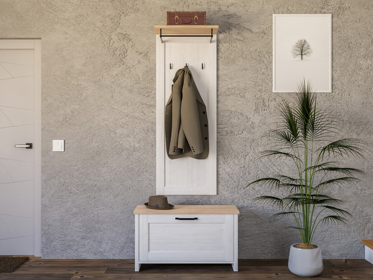 Se gosta da simplicidade do estilo escandinavo e das ideias interiores, então esta coleção é o que procura. A coleção de mobiliário espalha a simplicidade e o aconchego. A coleção é dominada por cores brilhantes e claras. As fachadas e armários brilhantes do mobiliário têm algumas sugestões de padrão de madeira, o que lhe confere naturalidade e combina bem com as bancadas. Esta coleção impressiona com a simplicidade das fachadas e os pequenos puxadores que servem de contraste. Com o mobiliário da coleção, é possível instalar uma sala de estar ou um espaço de corredor com aspecto estilizado. Não só acolhedor, mas também prático, o design acomodará as coisas mais importantes e assegurará que o uso de mobiliário seja o mais agradável possível. O mecanismo de fecho silencioso no mobiliário é especial na medida em que protege as portas e gavetas do fecho rápido. Graças a amortecedores especiais, as portas e gavetas são paradas imediatamente antes de fecharem e são puxadas lentamente, de modo a não fazerem qualquer barulho. O mobiliário terá um óptimo aspecto tanto em interiores claros como escuros e criará um ambiente de interiores escandinavos.
