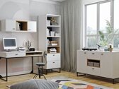 Esta coleção é perfeita para aqueles que criam um interior doméstico moderno ou de estilo industrial. As pernas metálicas dão ao mobiliário uma base estável, e a sua altura é adaptada aos aspiradores robotizados padrão, pelo que será extremamente fácil manter a casa limpa. As pequenas pegas de plástico não sobrecarregam o design, mas acrescentam um sotaque elegante. O mobiliário tem um mecanismo de fecho silencioso, graças ao qual as portas e gavetas serão protegidas de fecho rápido. O vidro temperado é utilizado no mobiliário, que é resistente ao impacto mecânico. As bordas das placas são protegidas com fita de acabamento especial, o que ajuda a protegê-las de pequenos danos. A coleção é adequada tanto para a sala de estar como para a casa de banho, tornando-a uma grande escolha para aqueles que gostam de móveis coordenados em toda a casa.