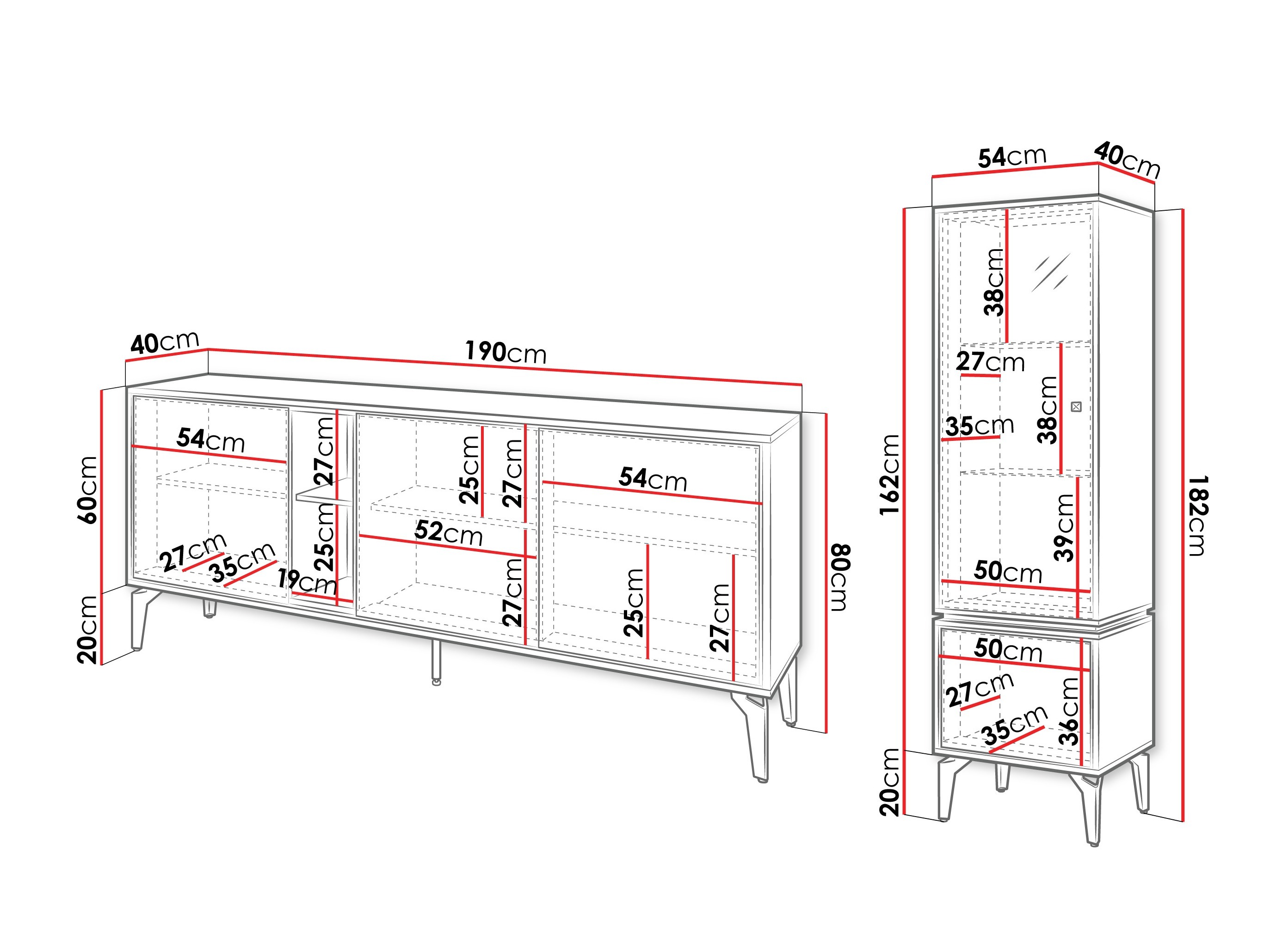 182 x 54 x 40 cm