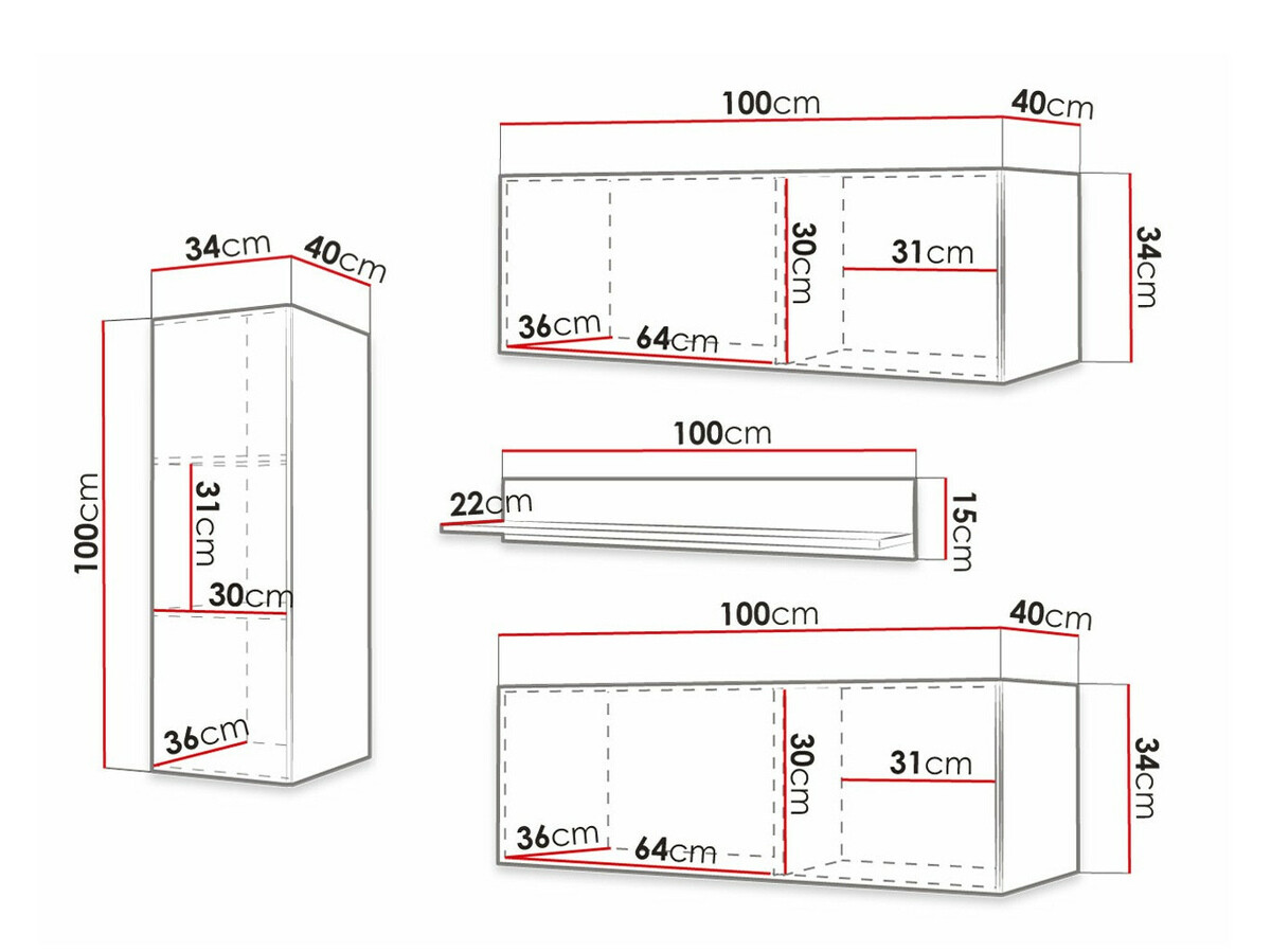 Informações sobre a fixação na parede. Para os móveis de parede ou suspensos não são fornecidas ferragens de fixação, pelo que deverá tratar da questão individualmente. Diferentes tipos de paredes requerem parafusos específicos ou mesmo diferentes profundidades de perfuração. Selecione o material de montagem com base no peso do móvel e no tipo de parede (por exemplo, gesso cartonado, alvenaria, madeira, etc.). Para garantir a qualidade e a segurança, utilize parafusos concebidos especificamente para o seu tipo de parede.