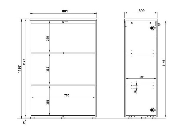 Informações sobre a fixação na parede. Para os móveis de parede ou suspensos não são fornecidas ferragens de fixação, pelo que deverá tratar da questão individualmente. Diferentes tipos de paredes requerem parafusos específicos ou mesmo diferentes profundidades de perfuração. Selecione o material de montagem com base no peso do móvel e no tipo de parede (por exemplo, gesso cartonado, alvenaria, madeira, etc.). Para garantir a qualidade e a segurança, utilize parafusos concebidos especificamente para o seu tipo de parede.