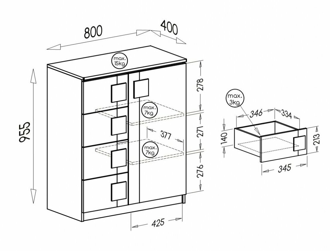 Capacidade máxima de peso para a gaveta: