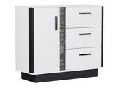 Esta coleção de mobiliário de sala de estar é dominada pelo branco brilhante complementado por detalhes em preto. Os elementos de imitação de madeira conferem ao mobiliário um carácter exclusivo. As frentes do mobiliário são decoradas com pegas de plástico preto. O vidro temperado utilizado na coleção é mais resistente aos efeitos mecânicos do que o vidro comum. A iluminação LED opcional com economia de energia irá proporcionar uma atmosfera única. As bordas do mobiliário são protegidas com fita de acabamento especial que as protege de pequenos danos. O mobiliário tem um mecanismo de fecho silencioso que impede que as gavetas e portas fechem rapidamente. Se pretende criar um interior exclusivo e elegante, convidamo-lo a prestar atenção a esta coleção!
