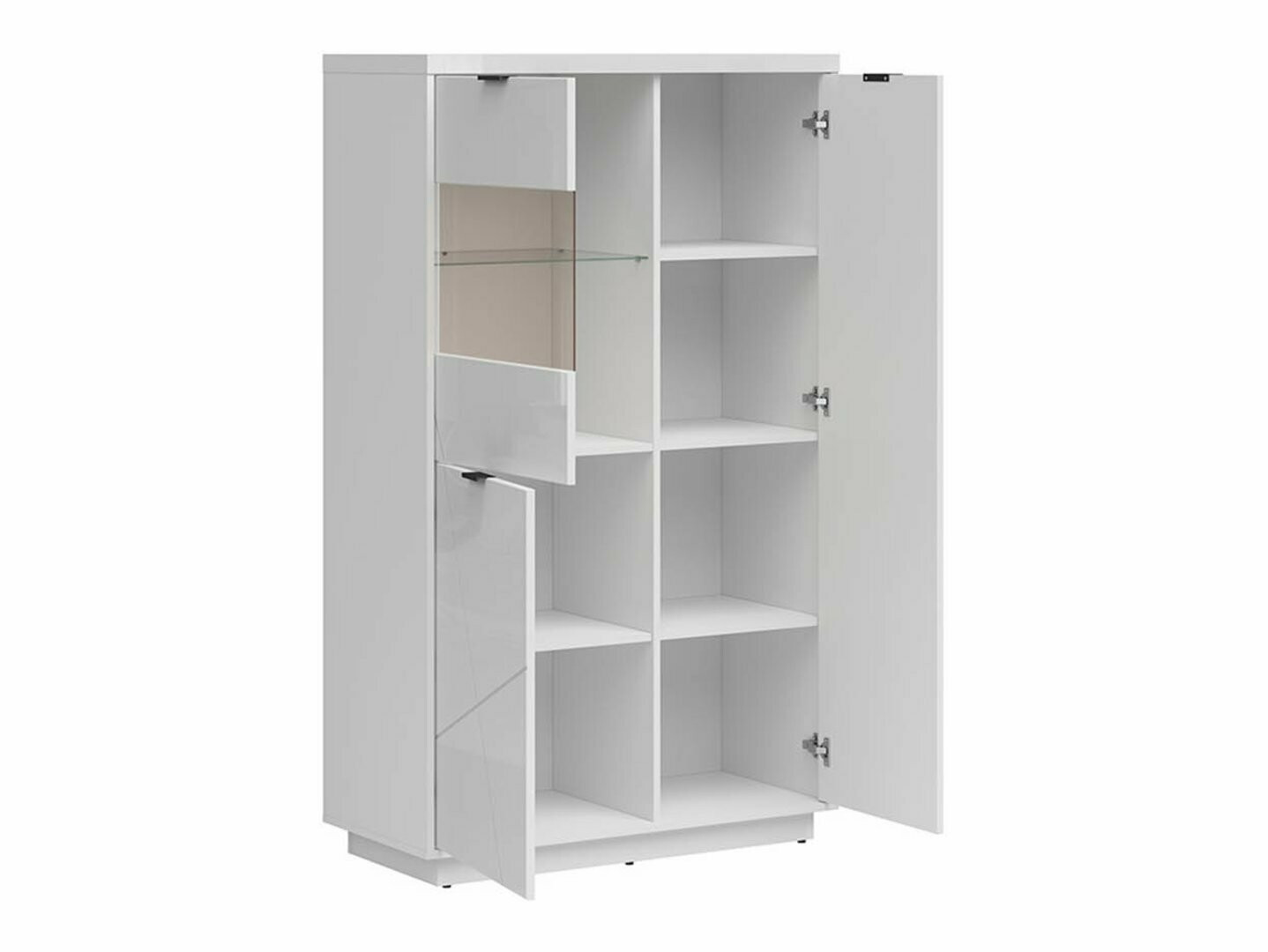 A coleção impressiona pelo seu design moderno, complementado por formas de inspiração minimalista. Este é um exemplo de um estilo interior moderno. A fachada decorada dão ao mobiliário um encanto extra. O mobiliário desta coleção vai encaixar perfeitamente no espaço habitacional. Haverá definitivamente espaço suficiente para as suas coisas, porque ao mobiliário não faltam prateleiras e gavetas espaçosas. Ao criar um design, a funcionalidade é também lembrada. As gavetas e portas têm um mecanismo de fecho silencioso que protege a porta e gavetas de fecho rápido, sem causar ruído adicional. As vitrinas utilizam vidro temperado, que se caracteriza pela sua resistência e durabilidade. Além disso, é possível integrar iluminação LED nas vitrines, que destacará os detalhes do interior das mesmas. Escolha a sua cor favorita e comece a fazer mudanças no interior de casa.