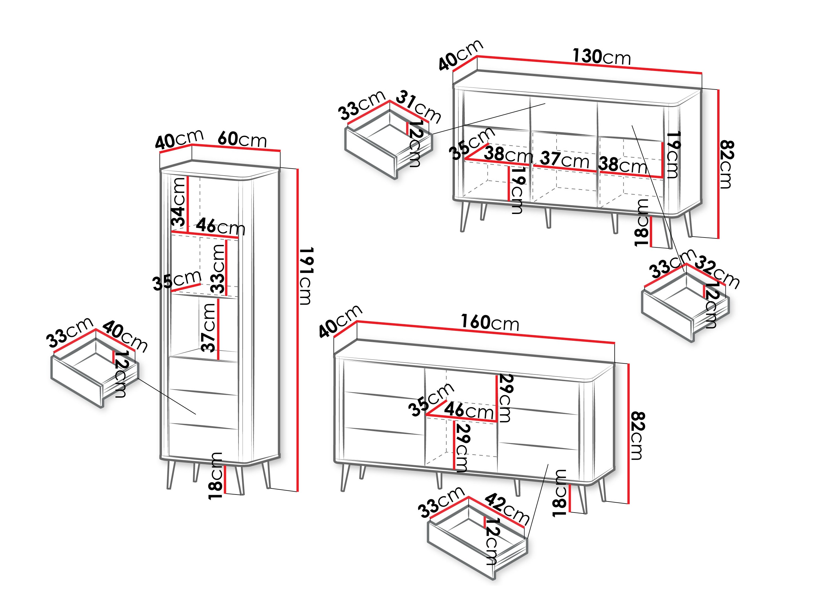 82 x 160 x 40; 82 x 130 x 40 cm