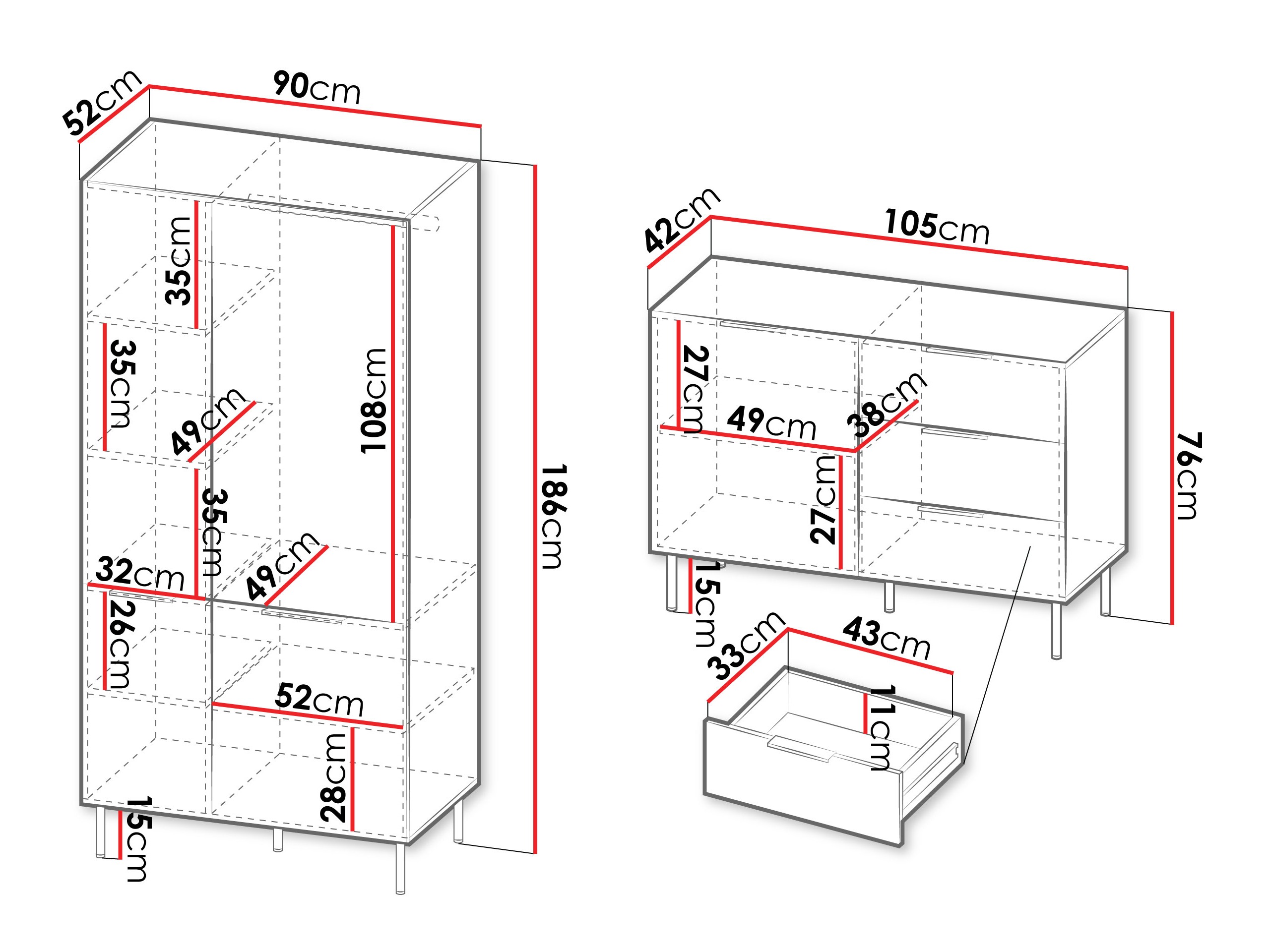 Dimensões de cómoda:
