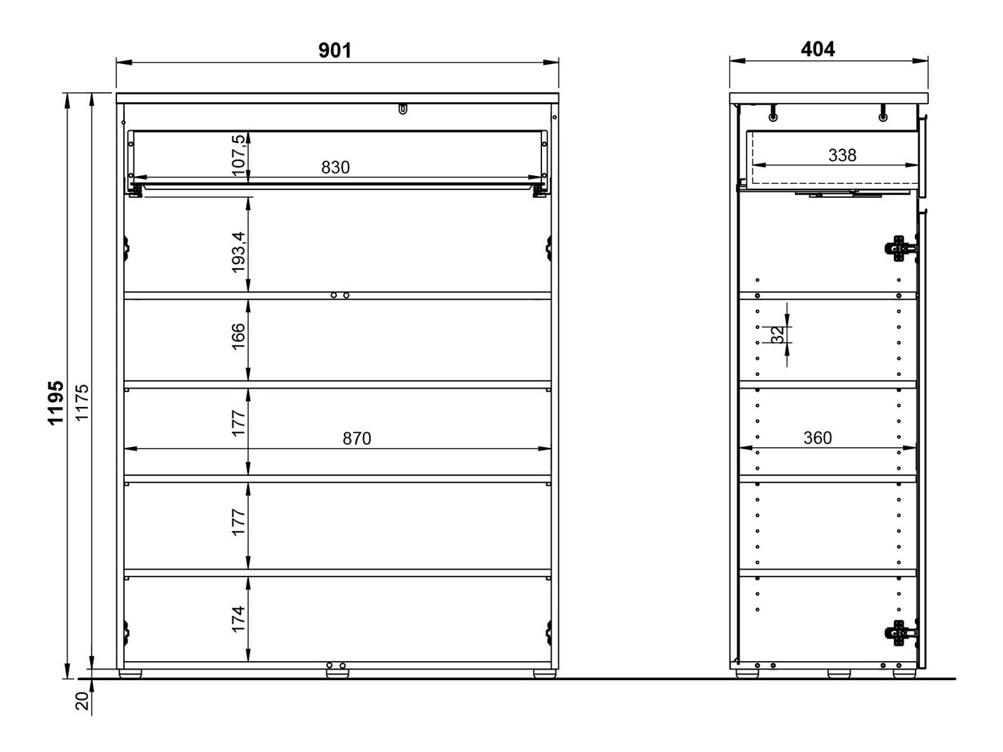 Dimensões de sapateiras: