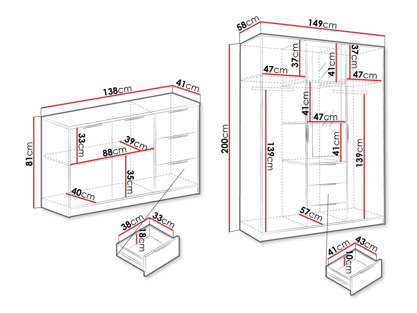 81 x 138 x 41 cm