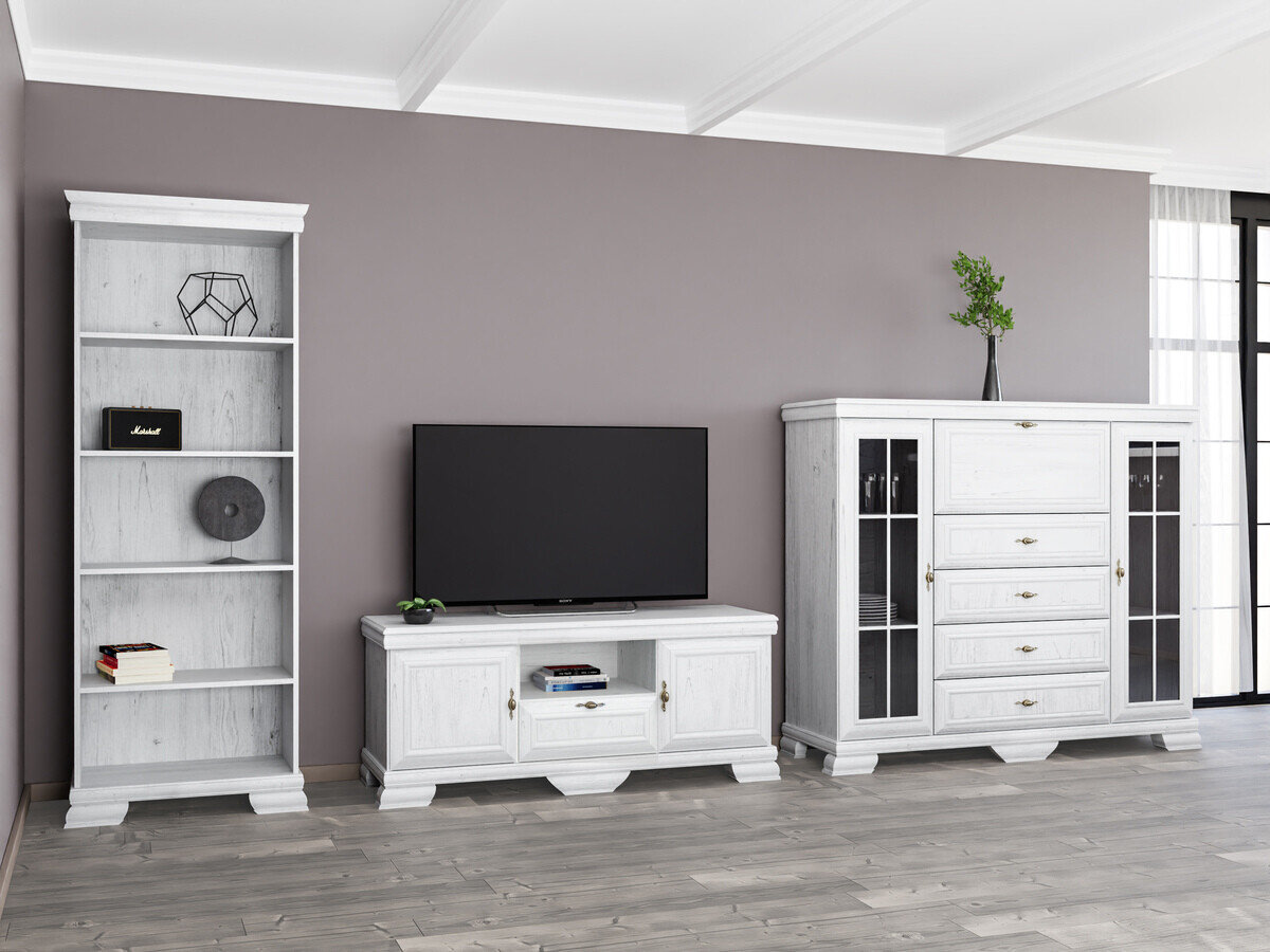 Esta coleção de estilo clássico é para aqueles que valorizam o design e a elegância intemporais. Os móveis da coleção são decorados com puxadores de metal de design exclusivo, dando a cada peça um toque de luxo. Uma das características mais importantes desta coleção é a sua superfície resistente a riscos, que garante a durabilidade do mobiliário. Mesmo após muitos anos de utilização contínua, este mobiliário manterá o seu aspeto impecável. Esta coleção não só irradia elegância, como também dá prioridade à funcionalidade. As prateleiras e as gavetas são espaçosas, garantindo que terá espaço suficiente para manter as coisas organizadas.