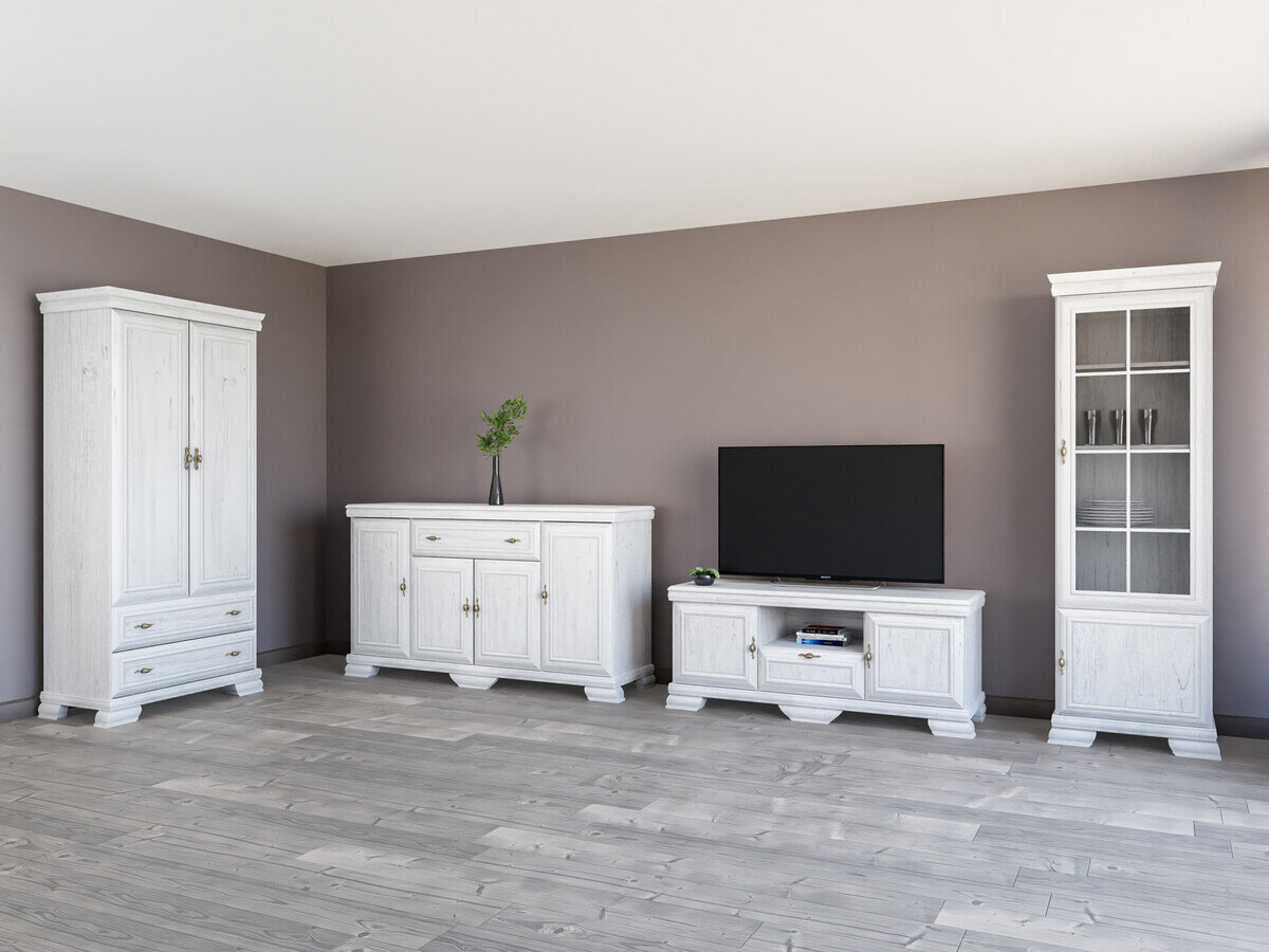 Esta coleção de estilo clássico é para aqueles que valorizam o design e a elegância intemporais. Os móveis da coleção são decorados com puxadores de metal de design exclusivo, dando a cada peça um toque de luxo. Uma das características mais importantes desta coleção é a sua superfície resistente a riscos, que garante a durabilidade do mobiliário. Mesmo após muitos anos de utilização contínua, este mobiliário manterá o seu aspeto impecável. Esta coleção não só irradia elegância, como também dá prioridade à funcionalidade. As prateleiras e as gavetas são espaçosas, garantindo que terá espaço suficiente para manter as coisas organizadas. A combinação do estilo clássico e do carácter prático garante que esta coleção não só decorará o seu interior, como também melhorará a qualidade da sua vida quotidiana. Desfrute da beleza do estilo clássico e traga uma elegância intemporal para a sua casa.