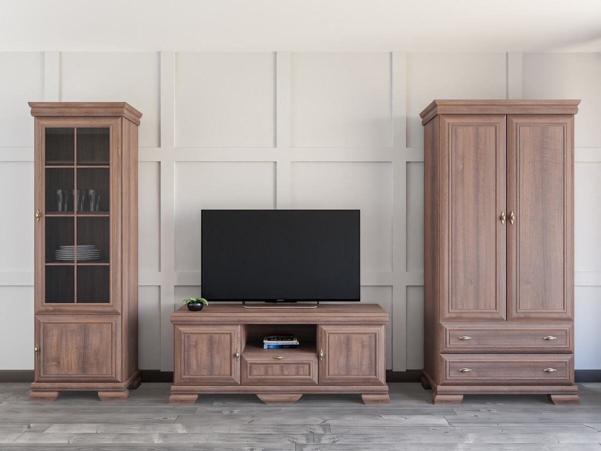 Esta coleção de estilo clássico é para aqueles que valorizam o design e a elegância intemporais. Os móveis da coleção são decorados com puxadores de metal de design exclusivo, dando a cada peça um toque de luxo. Uma das características mais importantes desta coleção é a sua superfície resistente a riscos, que garante a durabilidade do mobiliário. Mesmo após muitos anos de utilização contínua, este mobiliário manterá o seu aspeto impecável. Esta coleção não só irradia elegância, como também dá prioridade à funcionalidade. As prateleiras e as gavetas são espaçosas, garantindo que terá espaço suficiente para manter as coisas organizadas. A combinação do estilo clássico e do carácter prático garante que esta coleção não só decorará o seu interior, como também melhorará a qualidade da sua vida quotidiana. Desfrute da beleza do estilo clássico e traga uma elegância intemporal para a sua casa.