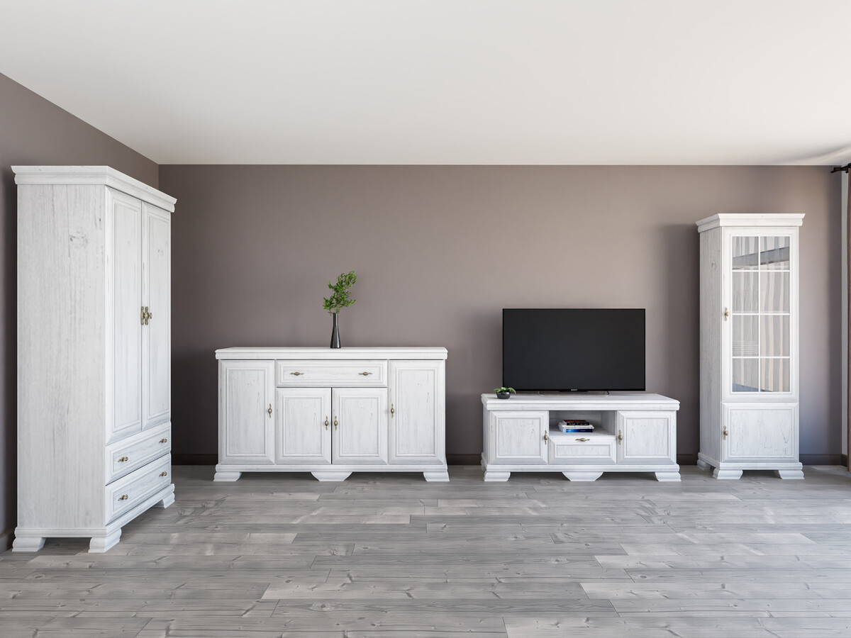 Esta coleção de estilo clássico é para aqueles que valorizam o design e a elegância intemporais. Os móveis da coleção são decorados com puxadores de metal de design exclusivo, dando a cada peça um toque de luxo. Uma das características mais importantes desta coleção é a sua superfície resistente a riscos, que garante a durabilidade do mobiliário. Mesmo após muitos anos de utilização contínua, este mobiliário manterá o seu aspeto impecável. Esta coleção não só irradia elegância, como também dá prioridade à funcionalidade. As prateleiras e as gavetas são espaçosas, garantindo que terá espaço suficiente para manter as coisas organizadas. A combinação do estilo clássico e do carácter prático garante que esta coleção não só decorará o seu interior, como também melhorará a qualidade da sua vida quotidiana. Desfrute da beleza do estilo clássico e traga uma elegância intemporal para a sua casa.