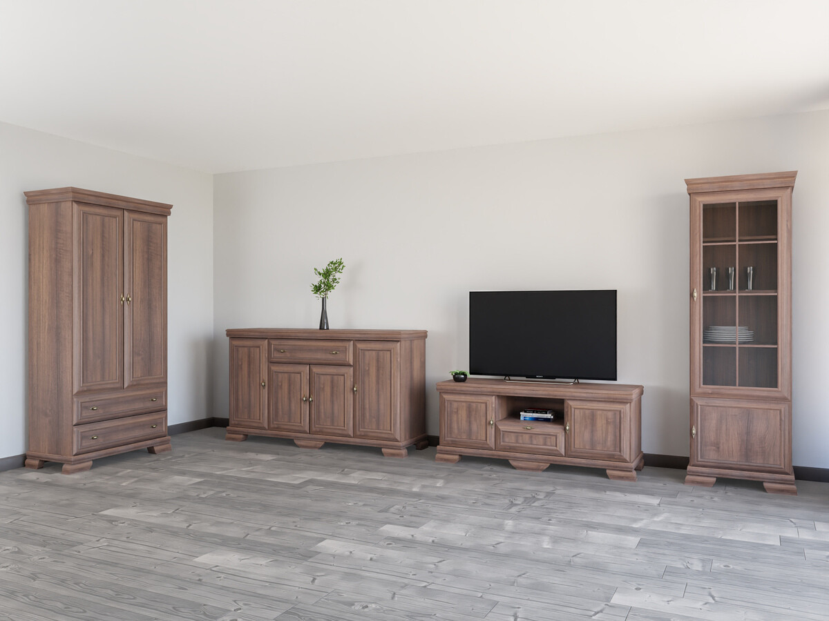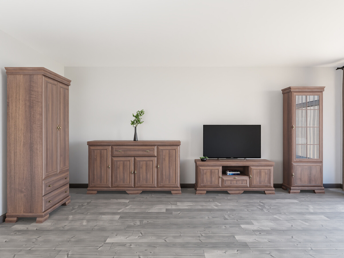 Esta coleção de estilo clássico é para aqueles que valorizam o design e a elegância intemporais. Os móveis da coleção são decorados com puxadores de metal de design exclusivo, dando a cada peça um toque de luxo. Uma das características mais importantes desta coleção é a sua superfície resistente a riscos, que garante a durabilidade do mobiliário. Mesmo após muitos anos de utilização contínua, este mobiliário manterá o seu aspeto impecável. Esta coleção não só irradia elegância, como também dá prioridade à funcionalidade. As prateleiras e as gavetas são espaçosas, garantindo que terá espaço suficiente para manter as coisas organizadas. A combinação do estilo clássico e do carácter prático garante que esta coleção não só decorará o seu interior, como também melhorará a qualidade da sua vida quotidiana. Desfrute da beleza do estilo clássico e traga uma elegância intemporal para a sua casa.