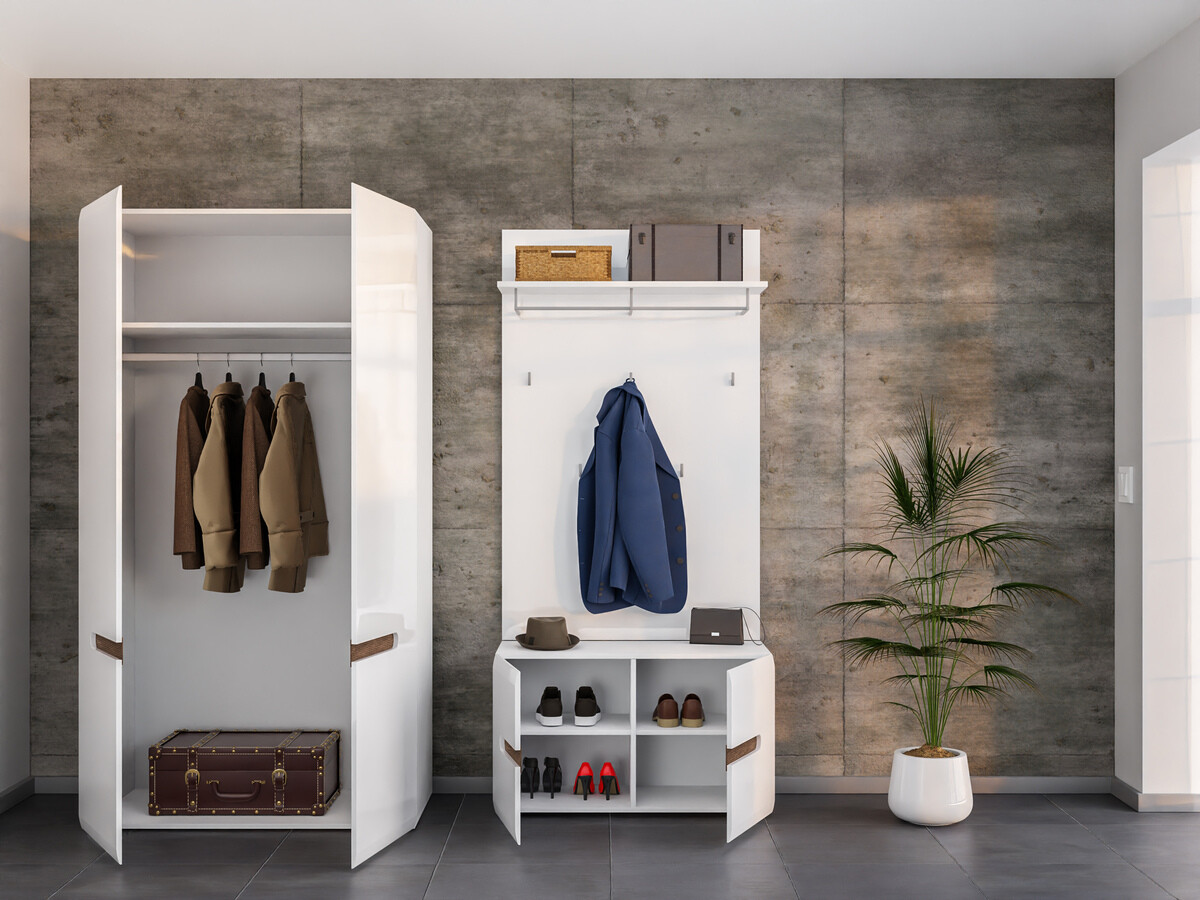 Esta coleção é uma excelente escolha para aqueles que querem criar um interior doméstico moderno, que, com a sua cor clara, é perfeito tanto para espaços pequenos como grandes. A coleção é caracterizada por fachadas de portas brilhantes e puxadores ocultos. O mecanismo de fecho silencioso no mobiliário impede o fecho rápido de portas e gavetas. As vitrinas da coleção utilizam vidro temperado, cuja resistência é 5-6 vezes superior à do vidro comum, termicamente não tratado. A iluminação LED integrada com economia de energia confere ao mobiliário um carácter único.