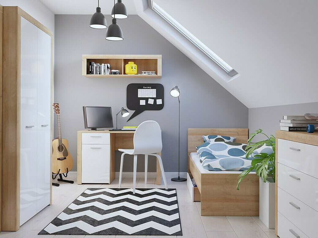 Uma coleção de mobiliário que é perfeita para casas que apreciam linhas limpas e design minimalista. Esta coleção é dominada por cores neutras. O branco brilhante e o duo de cor de carvalho "Riviera" irradia calor e aconchego. As linhas simples do mobiliário e as pegas de plástico minimalistas criam uma combinação perfeita. A funcionalidade também não é esquecida: espaçosos compartimentos de mobiliário garantirão que todas as coisas mais importantes encontrem o seu lugar. As vitrinas da coleção utilizam vidro temperado, que é mais resistente do que o vidro comum.