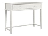 Estou feliz com isso na mesa. Ele me serviu bem no peitoril da janela e foi muito adequado para eu trabalhar com um laptop. Eu posso pegar onde eu preciso com muita facilidade. Achei que a gaveta seria mais funda. A gaveta em si é mais curta que a superfície da mesa, não atingindo a parede traseira. Ao comprar, todas as dimensões são especificadas, só nem pensei na profundidade da gaveta. No entanto, a gaveta é muito adequada para guardar pequenos itens.