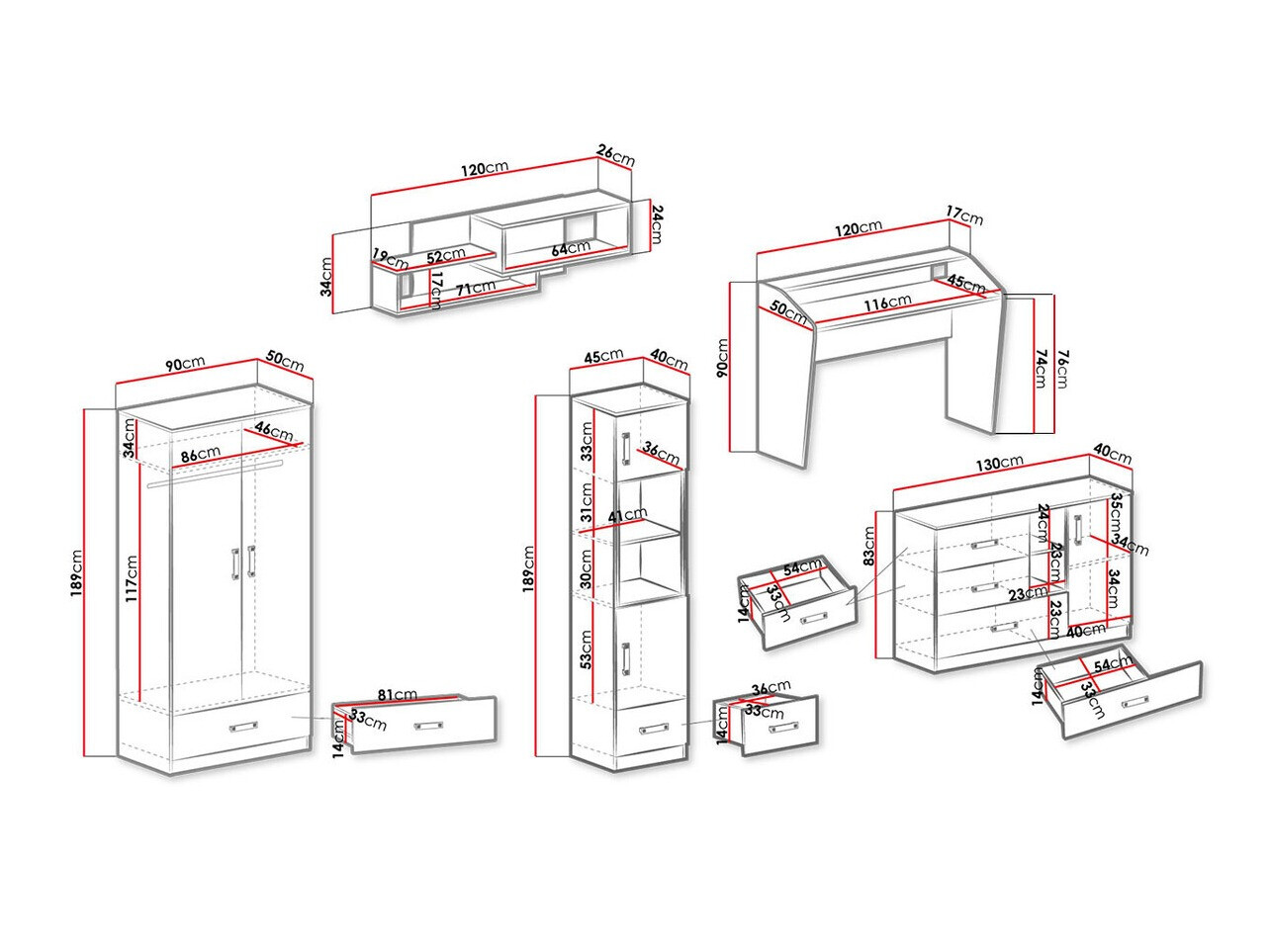 Dimensões de roupeiro: