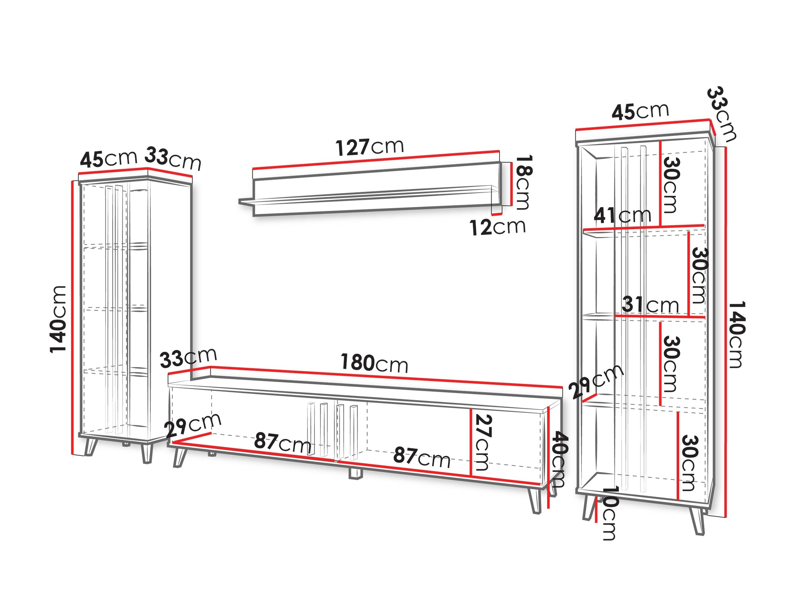 40 x 180 x 33 cm