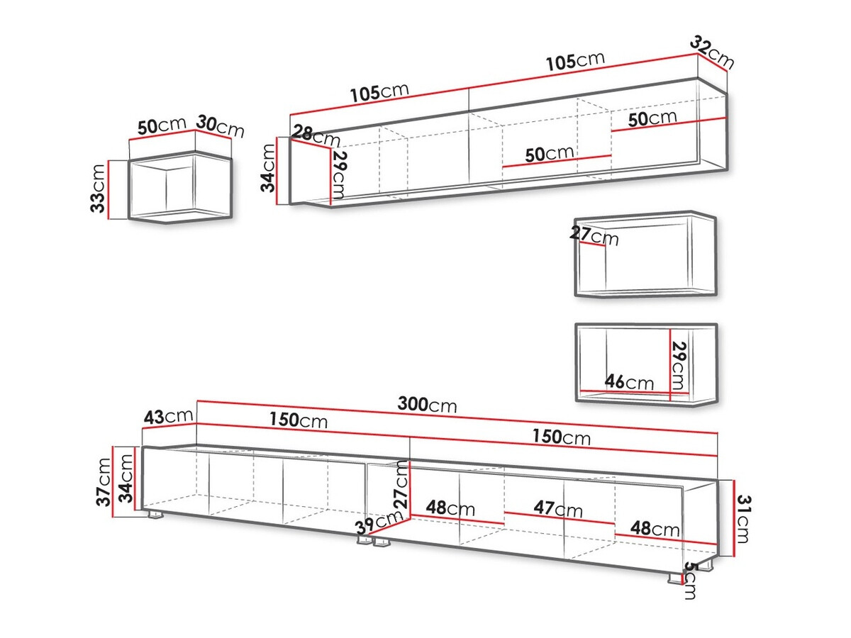 Informações sobre a fixação na parede. Para os móveis de parede ou suspensos não são fornecidas ferragens de fixação, pelo que deverá tratar da questão individualmente. Diferentes tipos de paredes requerem parafusos específicos ou mesmo diferentes profundidades de perfuração. Selecione o material de montagem com base no peso do móvel e no tipo de parede (por exemplo, gesso cartonado, alvenaria, madeira, etc.). Para garantir a qualidade e a segurança, utilize parafusos concebidos especificamente para o seu tipo de parede.