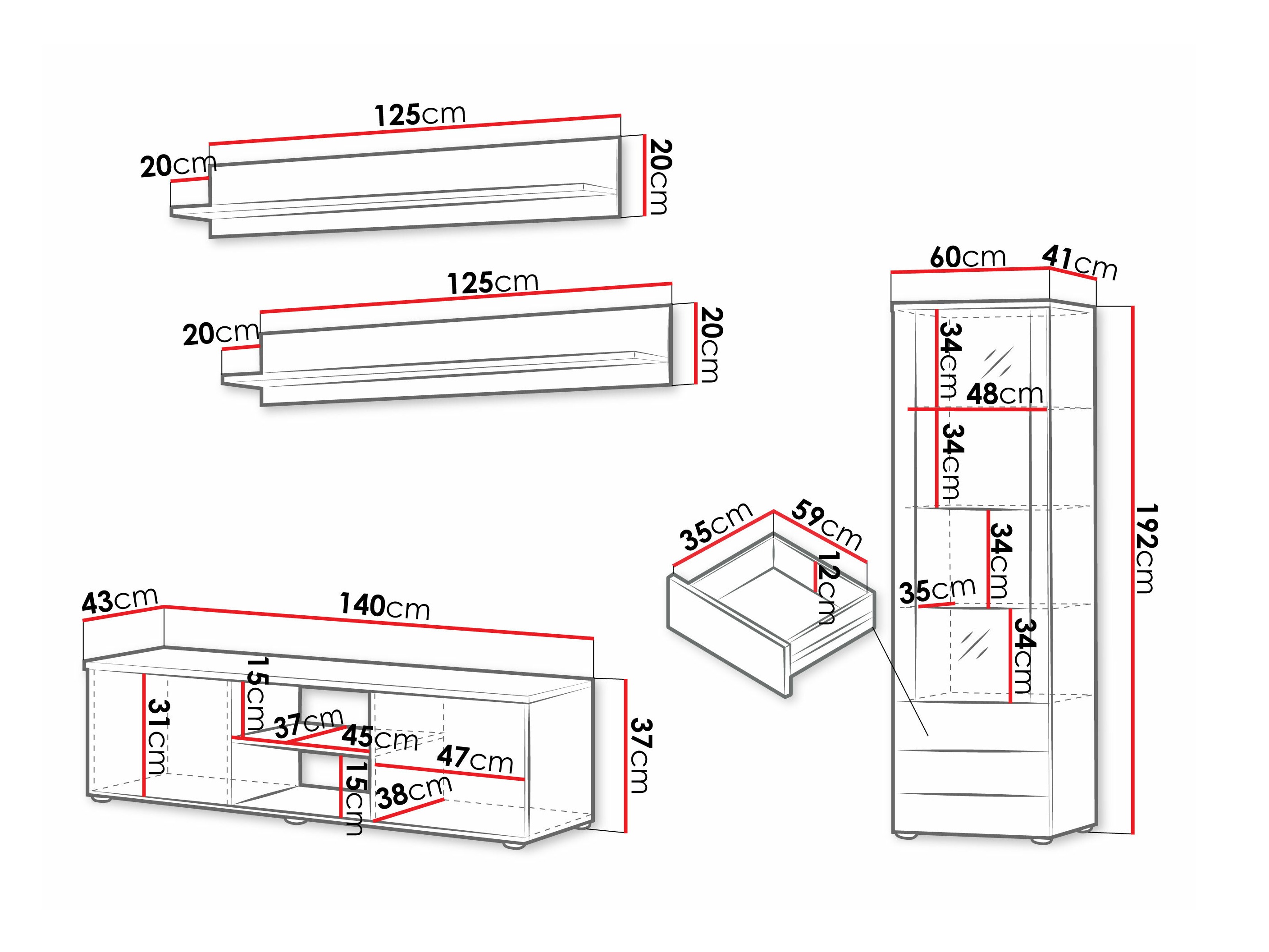 37 x 140 x 43 cm