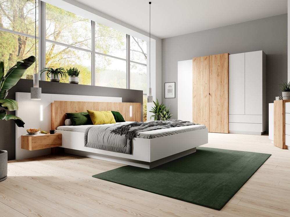 Se procura soluções de design moderno para a sua casa, preste atenção a esta coleção. O duo de carvalho dourado "Craft" e cor branca ficará muito elegante no espaço, e as formas invulgares do mobiliário darão singularidade à divisão. O design minimalista é complementado pelo mecanismo de abertura "Push to open", graças ao qual é possível abrir portas e gavetas com apenas um toque. Os cantos dos móveis são protegidos com uma fita especial, que garante que os móveis se mantêm em excelentes condições, mesmo após uma utilização prolongada. A coleção combina estilo e praticidade, tornando-a a escolha perfeita para a casa moderna.