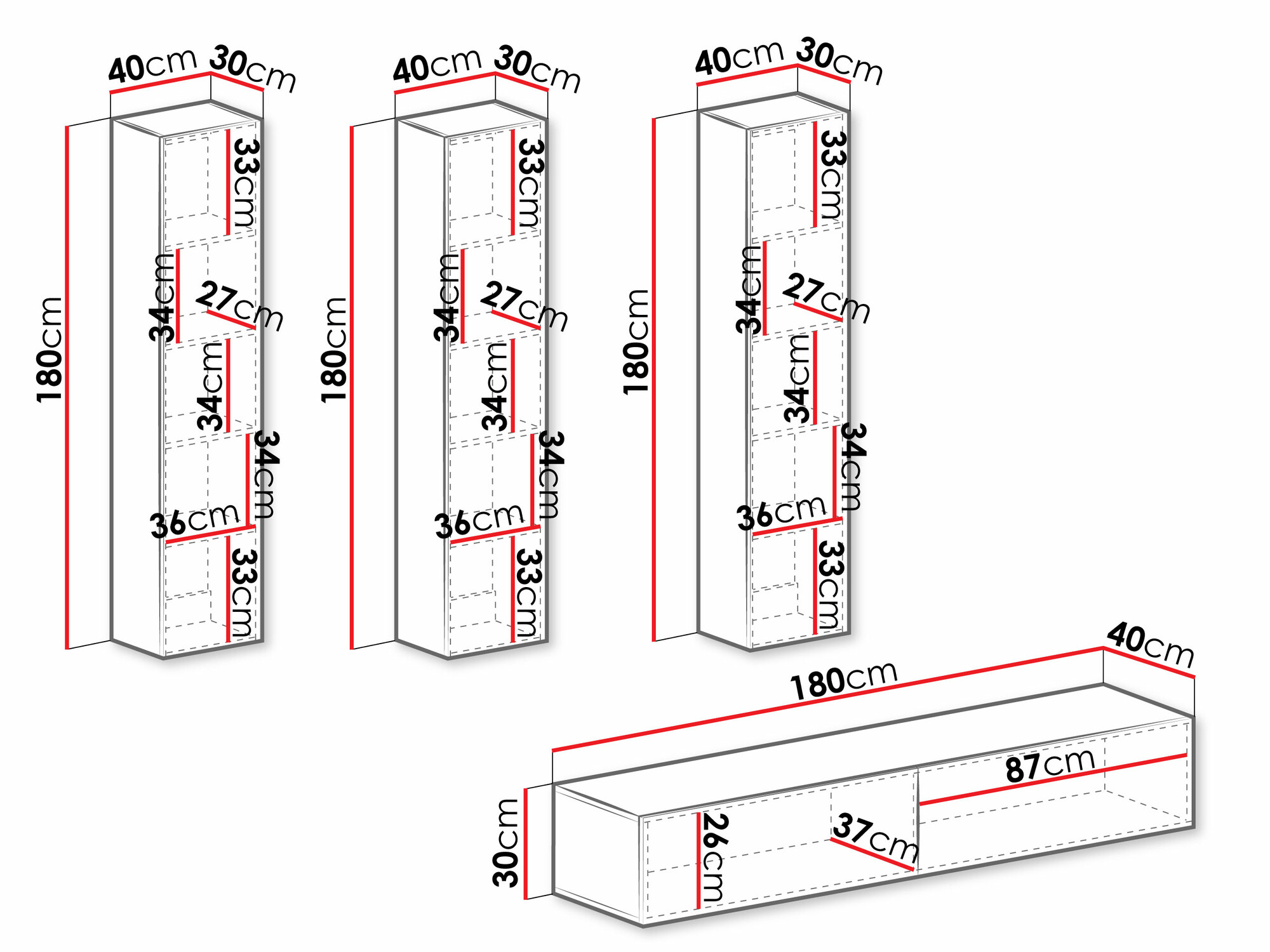Informações sobre a fixação na parede. Para os móveis de parede ou suspensos não são fornecidas ferragens de fixação, pelo que deverá tratar da questão individualmente. Diferentes tipos de paredes requerem parafusos específicos ou mesmo diferentes profundidades de perfuração. Selecione o material de montagem com base no peso do móvel e no tipo de parede (por exemplo, gesso cartonado, alvenaria, madeira, etc.). Para garantir a qualidade e a segurança, utilize parafusos concebidos especificamente para o seu tipo de parede.