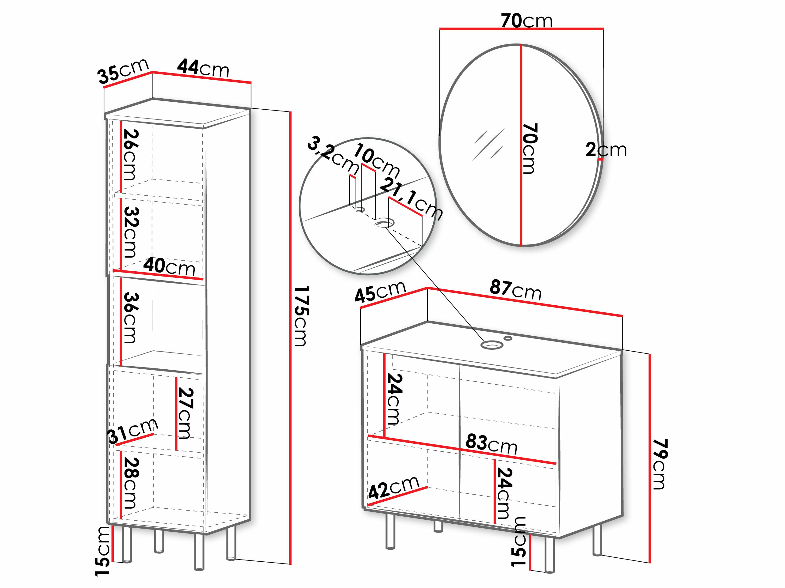 Dimensões do armário do lavatório: