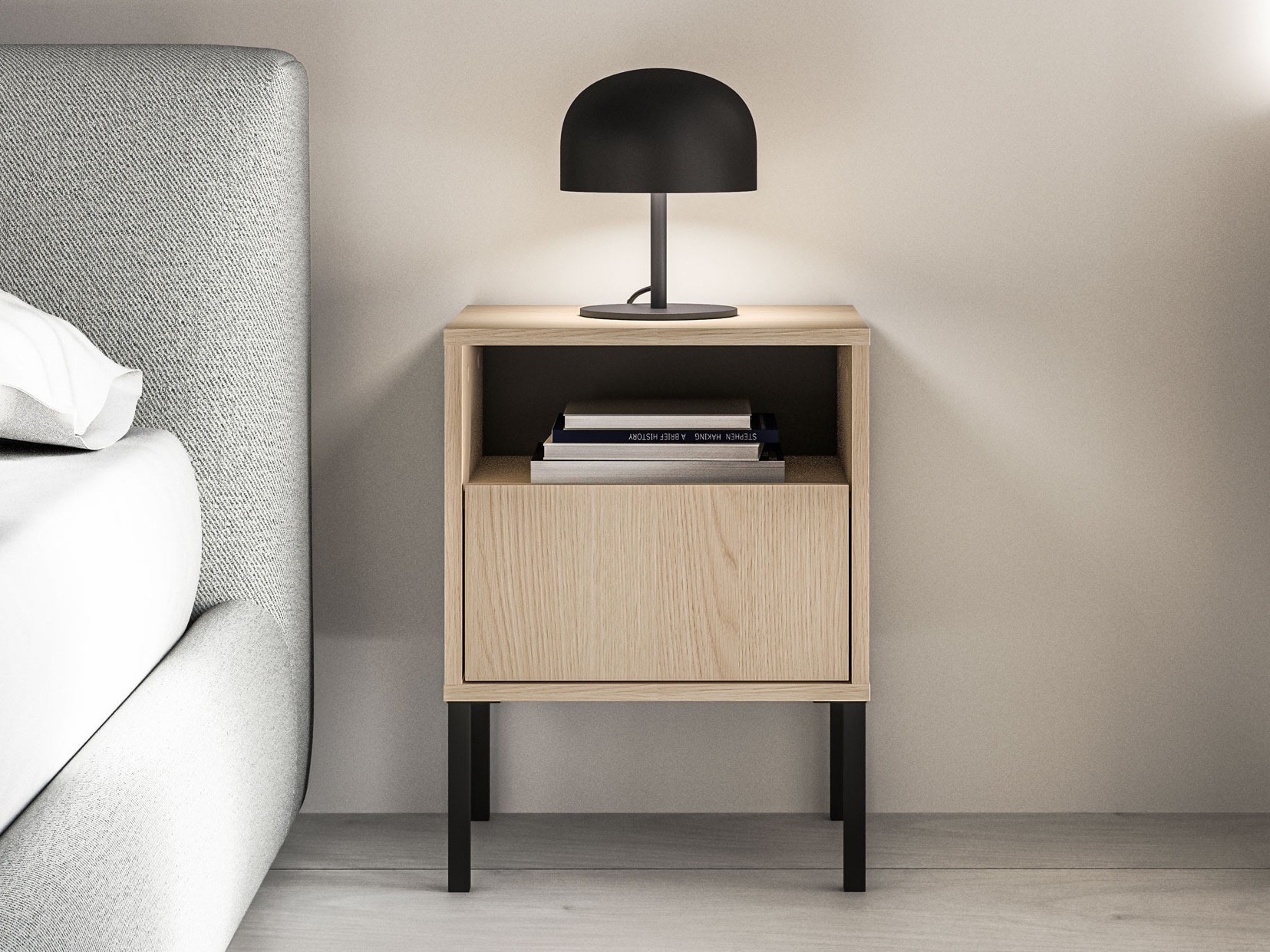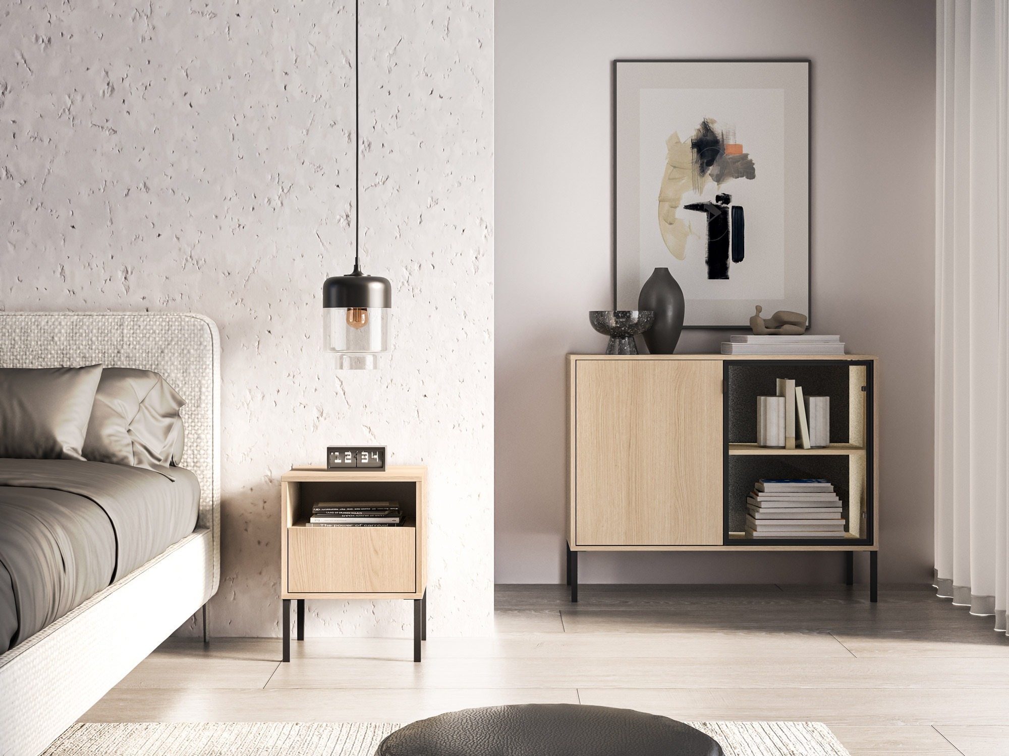 Estas peças de mobiliário de estilo contemporâneo destacam-se pelas suas linhas simples e estética refinada, permitindo que se integrem naturalmente em interiores de diferentes estilos. Os puxadores minimalistas são combinados com um mecanismo push prático, garantindo que as frentes se mantenham visualmente uniformes e organizadas. Um sistema de fecho suave integrado assegura o fecho lento e suave de portas e gavetas. A iluminação LED integrada nas estantes acrescenta uma sensação adicional de calor e modernidade, iluminando subtilmente o espaço e realçando os detalhes de design do mobiliário. É uma excelente escolha para quem procura mobiliário que combine funcionalidade com um design elegante.
