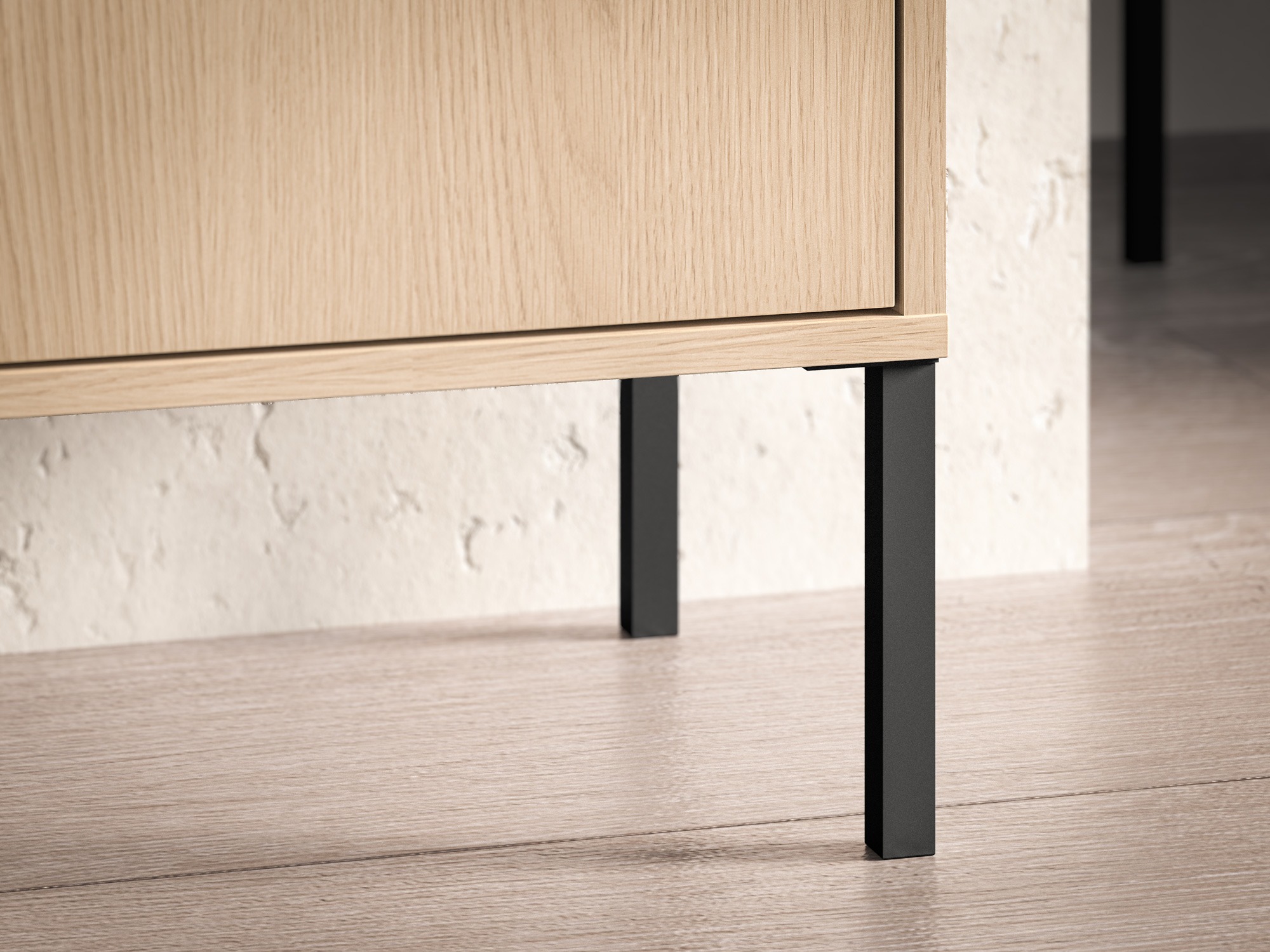 Esta peça de mobiliário está adaptada ao tamanho do robô. São cada vez mais frequentes os móveis com pernas altas destinados a casas com aspiradores robotizados. A altura das pernas do mobiliário é ajustada aos aspiradores robotizados padrão. Note-se que a altura das pernas deve ser superior a 10 cm. Deste modo o robô alcança facilmente os lugares debaixo do móvel sem o risco de ficar preso.