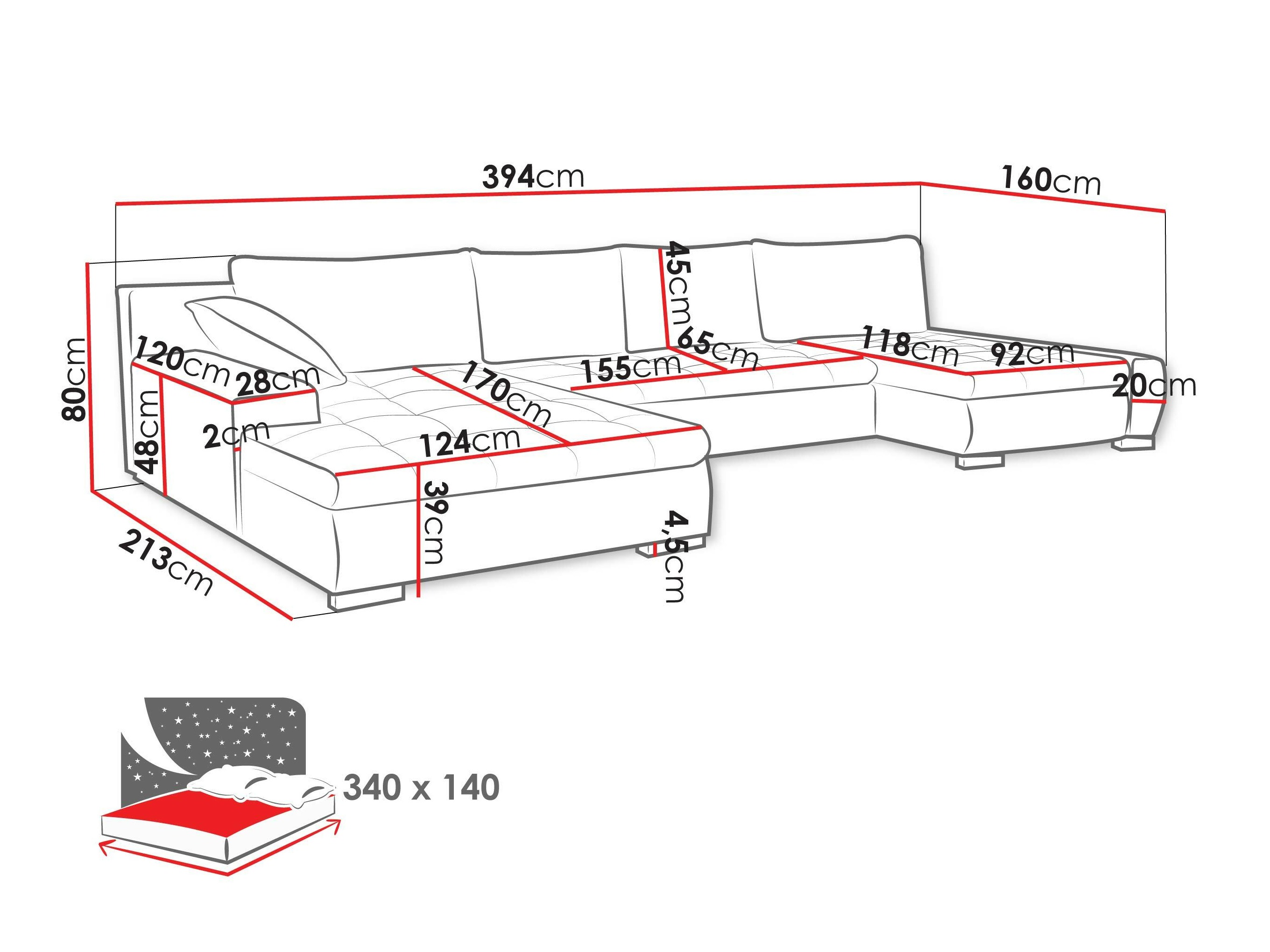 Largura da área de dormir: