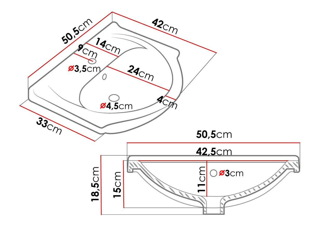 Dimensões do lavatório: