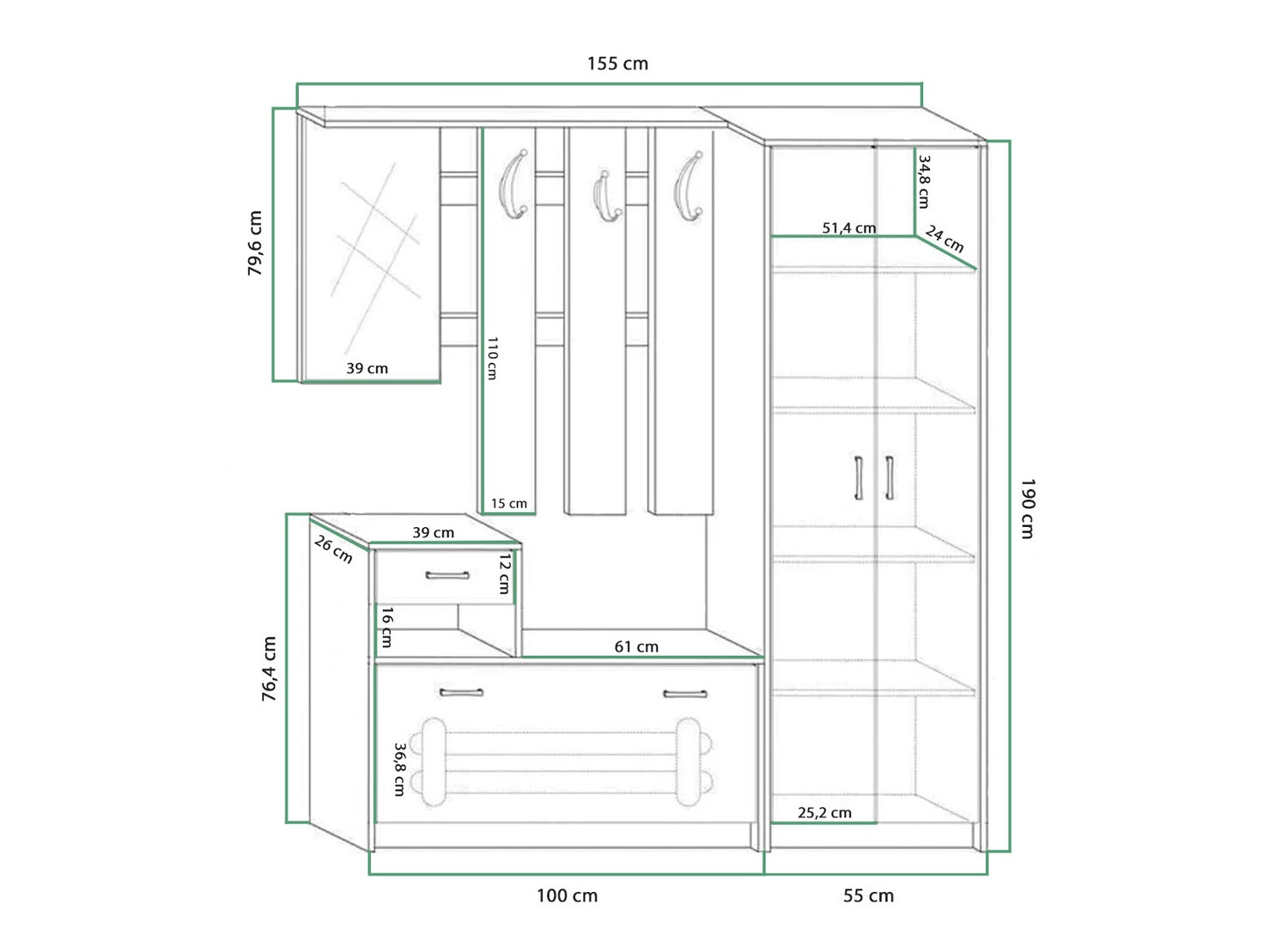 O guarda-roupa é lindo, moderno e útil, há espaço para sapatos e agasalhos, gosto do espelho e espaço para bolsa ou mochila. É ótimo para apartamentos porque é estreito e não ocupa muito espaço.