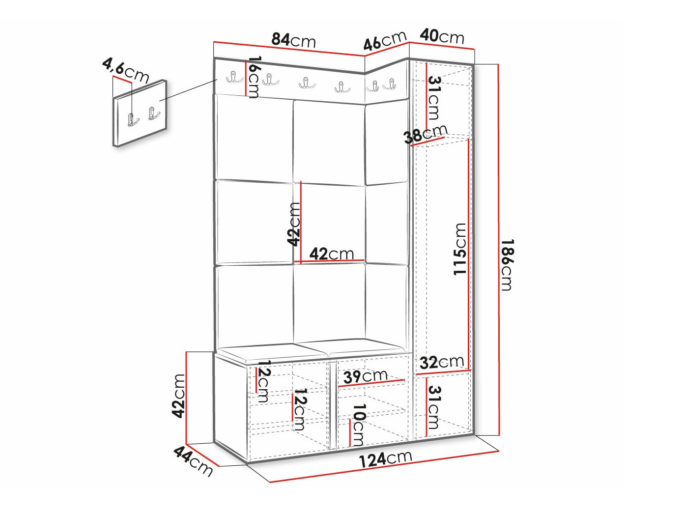 186 x 40 x 46 cm