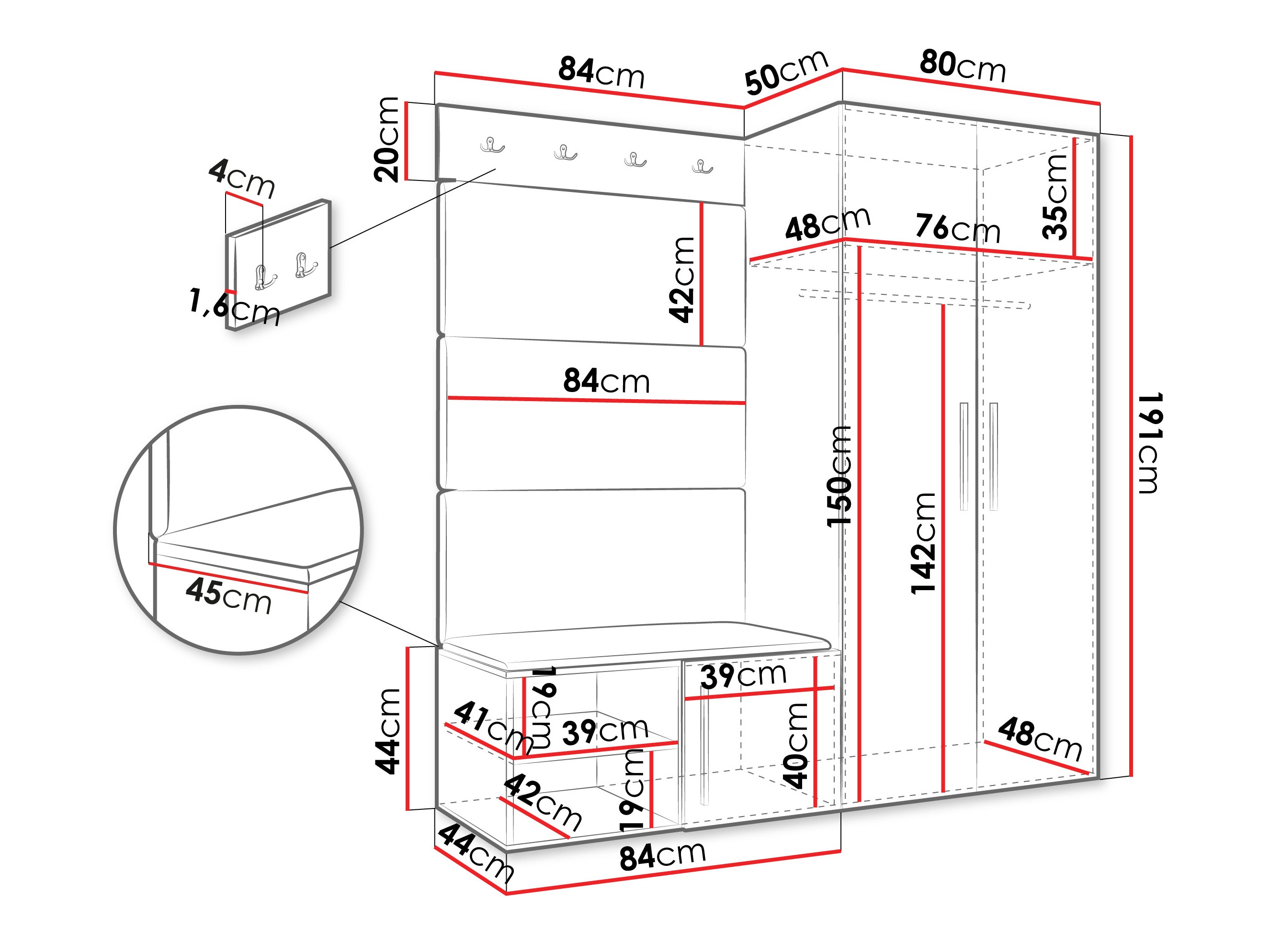 Dimensões de roupeiro: