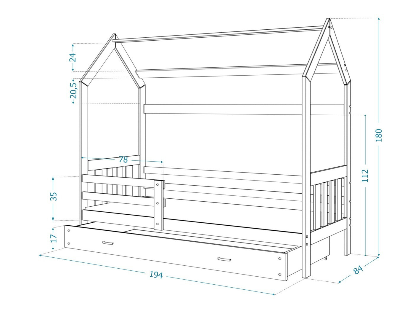 - 80 x 190 cm