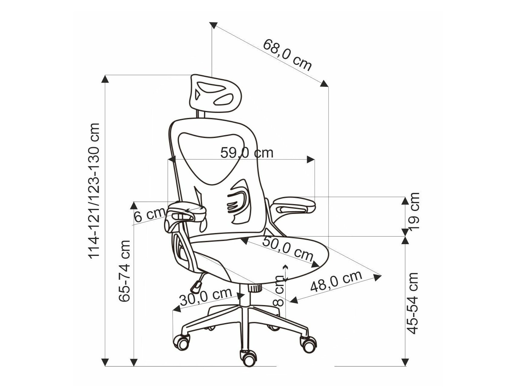 Largura do apoio para braços: