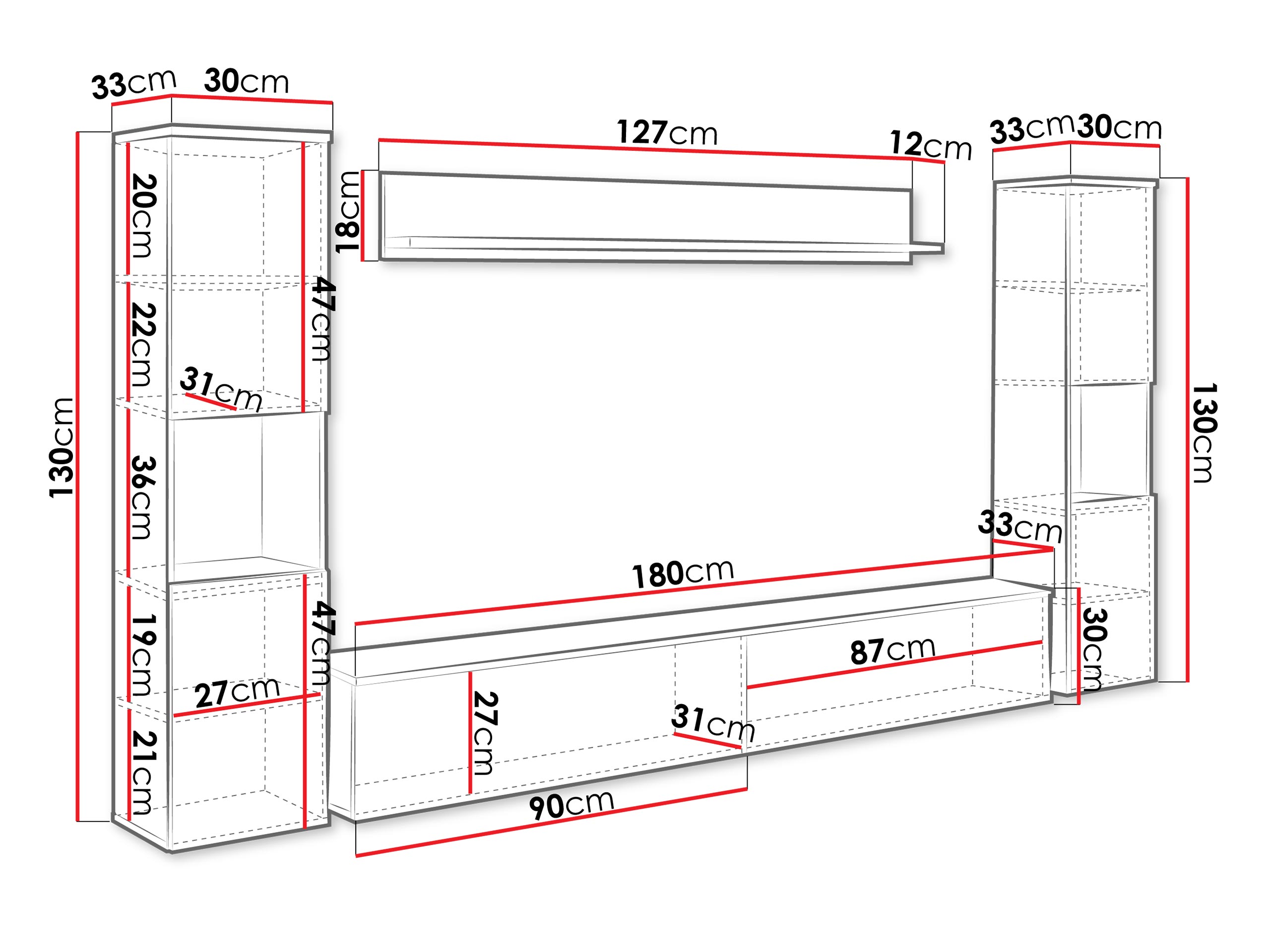 30 x 180 x 33 cm