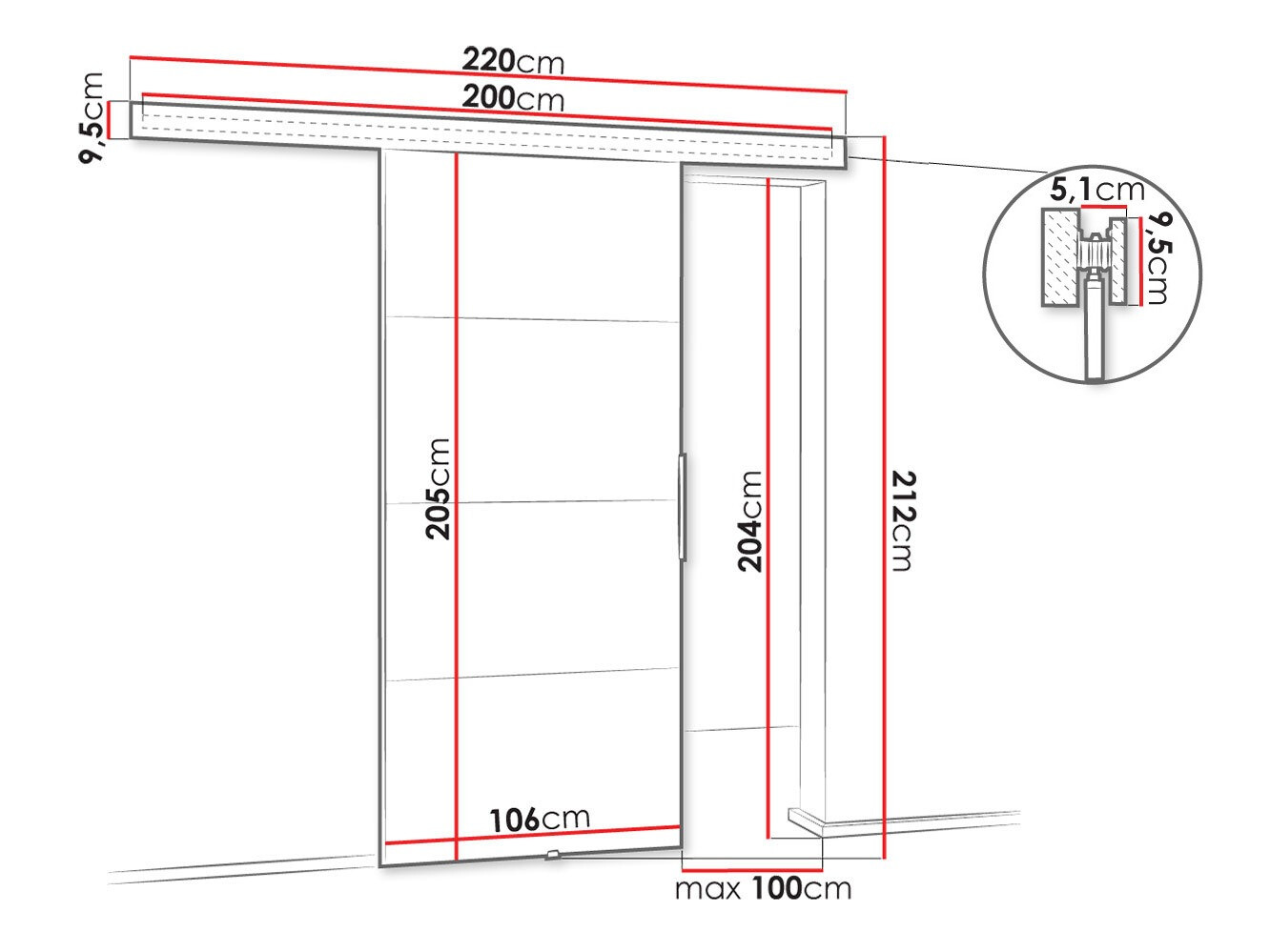 Dimensões do sistema de portas de correr: